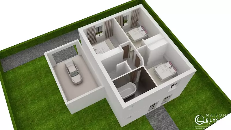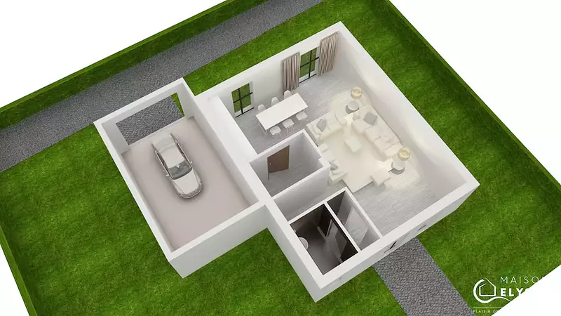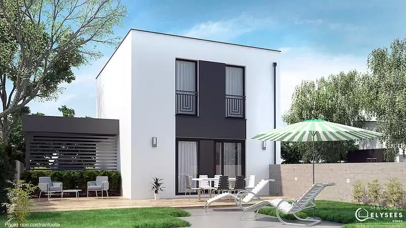 Parfaitement adaptée aux terrains étroits, la maison Evolium se distingue par sa ligne moderne et ses finitions de qualité. Les menuiseries en aluminium, très demandées par nos clients, ajoutent une touche d'élégance et de durabilité à l'ensemble.