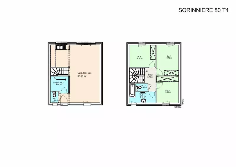 La Sorinière se distingue par ses 3 chambres spacieuses et ses 4 pièces bien agencées. La pièce de vie traversante, baignée de lumière grâce aux baies coulissantes, comprend un espace cuisine-salon-séjour convivial et fonctionnel.