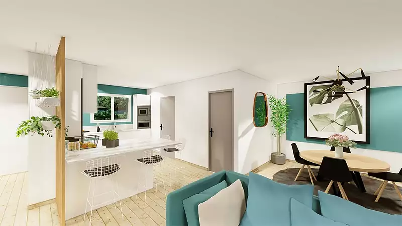 Idée de réalisation en modèle prêt à décorer sur l'un de nos terrains partenaires, sous réserve de disponibilités. Voir détails en agence.