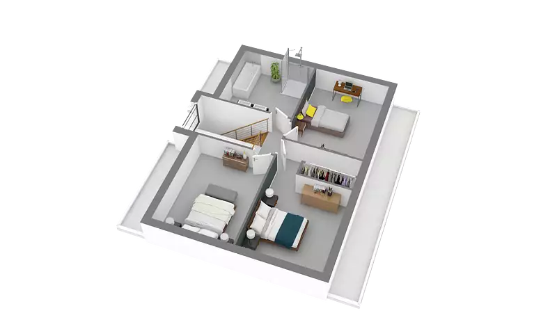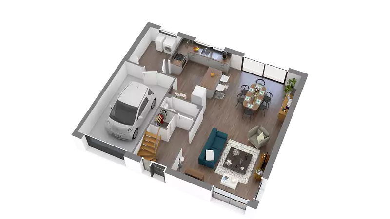 Ce pavillon neuf au normes RE2020, se compose d’un bel espace de vie ouvert, 3 chambres, 1 vide sur hall, 1 salle de bains, WC séparé, cellier et garage avec accès à l’habitation.