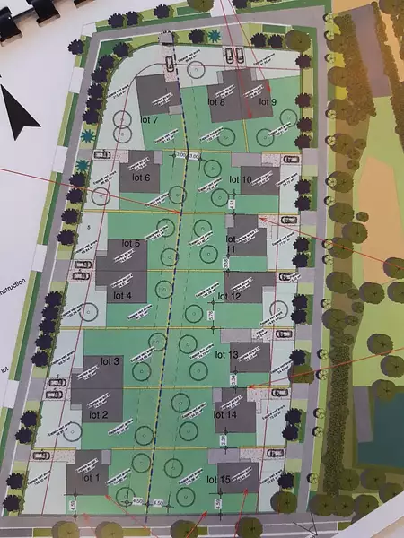 Accès chantier, TAE, EDF, Orange, collecte EP avec évacuation par caisson d’infiltration, Remblai, Béton balayé compris géotextile et tout-venant pour les places de stationnement et PE, Bordurettes béton au pourtour du béton balayé et pavé pour séparer lorsque nous avons 2 places côte à côte, grillage simple torsion avec portillon 1m.
