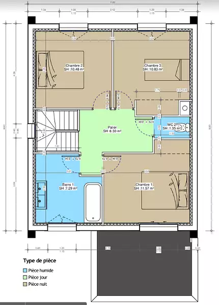 Vide sanitaire de 1M, fondations 45x25 avec raidisseurs, plancher béton étage, pente de toit 45°, tuiles HP10 GRISE, cache moineaux PVC blanc, enduit gratté 2 teintes, menuiseries alu RAL 7016, PG sectionnelle électrique RAL 7016, VR électrique coffre BBI, bloc portes post formés, carrelage de base 45X45 sur tout le RDC sauf garage, ragréage sur tout l’étage, Escalier étage bois avec contremarches, 1 évier, 1 meuble vasque 63cm, 1 baignoire, 2 WC, 1 robinet puisage, PAC DUO plancher chauffant RDC et radiateurs étage, peinture 2 couches mur et plafond + porte intérieur + escalier, parquet sur tout l’étage même la salle de bain.