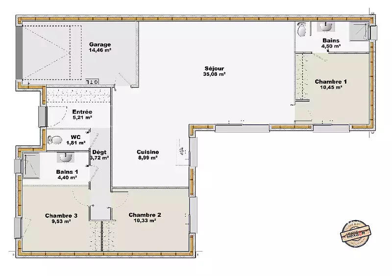 Terrain proposé par un partenaire foncier selon disponibilités et autorisation de publicité au prix de 70 000 €. Hors droit d'enregistrement et frais de notaire. Terrain + Maison proposés au prix de 390 000 € (Hors branchements et raccordements, papiers peints, peintures, revêtement de sol dans les chambres. Tarif modifiable sans préavis). Etiquette énergie : A. Différents modèles disponibles pour ce terrain. . HEXAOM Services est enregistré auprès de l'ORIAS en tant que Courtier en financement, Niveau 1, sous le numéro 14001345.