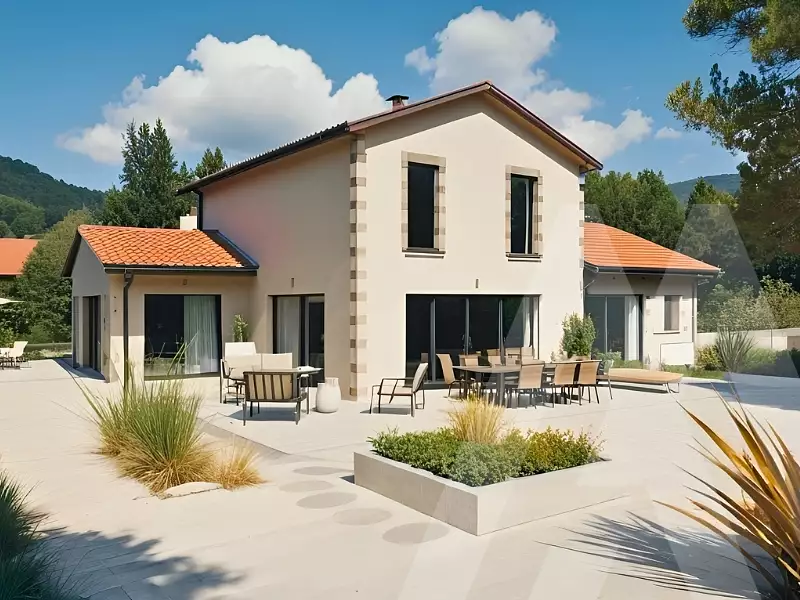****************************************************************** Visuel d'illustration. Le modèle est totalement adaptable à vos envies et besoins et personnalisable grâce à de nombreuses options de finition. Nous consulter pour plus d’informations. Le prix affiché comprend le coût du terrain et de la construction hors frais de notaire et taxes. Les annonces de terrains constructibles sont sélectionnées auprès de nos partenaires fonciers selon disponibilités et autorisation de publicité en vue de construire une maison neuve avec un Contrat de Construction de Maison Individuelle dans le cadre de la loi du 19/12/1990. Ces derniers sont soit des professionnels dûment habilités à la transaction immobilière, soit des particuliers. Les terrains sélectionnés sont disponibles à la date de la première parution de l’annonce. En aucun cas Maisons ARLOGIS ou ses collaborateurs ne sont propriétaires des terrains, ne jouent un rôle d’intermédiation ou de négociation sur la transaction et ne participent à la vente. Prix indiqués par nos partenaires fonciers.