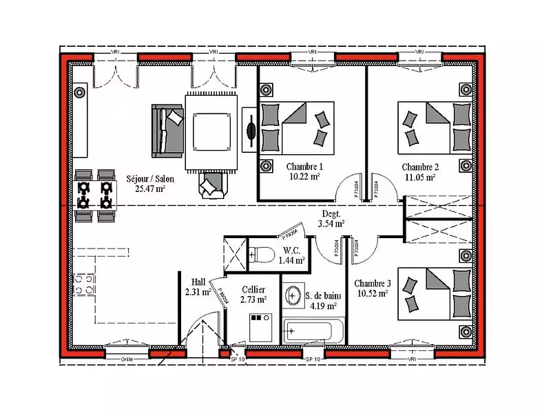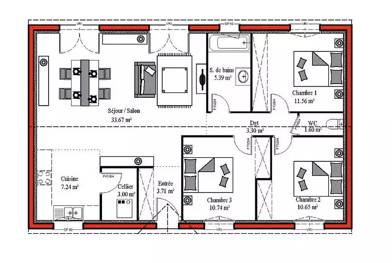 - Chambres : 3