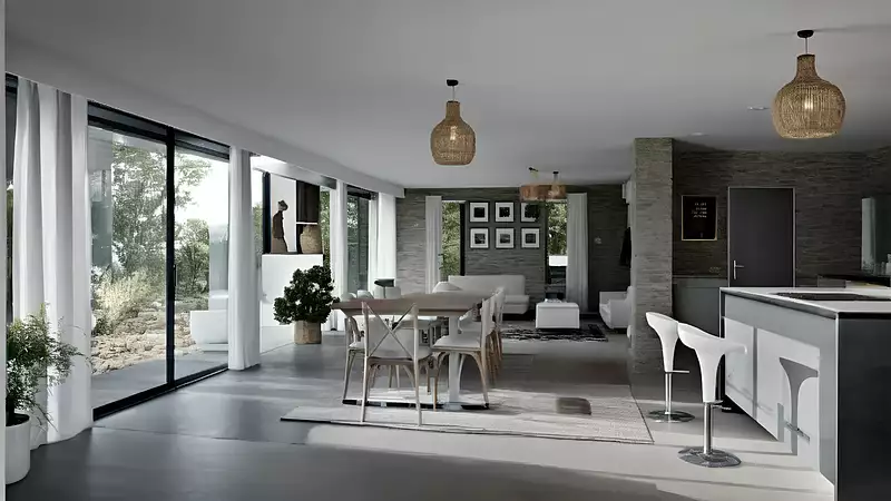 Implantée sur un terrain généreux de 897 m² orienté plein sud, vous profiterez d'un extérieur agréable. Située à proximité des commodités essentielles telles que des écoles, des espaces verts et des commerces, cette maison allie confort et praticité. En somme, une opportunité à ne pas manquer pour ceux qui recherchent un cadre de vie paisible sans sacrifier l’accès aux infrastructures urbaines. Visuel d'illustration. Le modèle est totalement adaptable à vos envies et besoins et personnalisable grâce à de nombreuses options de finition. Nous consulter pour plus d’informations. Le prix affiché comprend le coût du terrain et de la construction hors frais de notaire et taxes. Les annonces de terrains constructibles sont sélectionnées auprès de nos partenaires fonciers selon disponibilités et autorisation de publicité en vue de construire une maison neuve avec un Contrat de Construction de Maison Individuelle dans le cadre de la loi du 19/12/1990. Ces derniers sont soit des professionnels dûment habilités à la transaction immobilière, soit des particuliers. Les terrains sélectionnés sont disponibles à la date de la première parution de l’annonce. En aucun cas Maisons ARLOGIS ou ses collaborateurs ne sont propriétaires des terrains, ne jouent un rôle d’intermédiation ou de négociation sur la transaction et ne participent à la vente. Prix indiqués par nos partenaires fonciers.