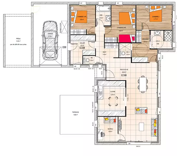 Proposée par MAISONS BERNARD JAMBERT – 5 pièces - 4 chambres - terrain 549 m²