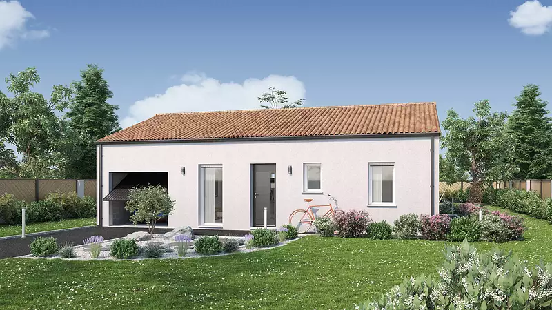 Idéale pour une première acquisition, charmante maison de plain-pied d’une surface habitable de 75 m² composée d’un espace de vie avec cuisine ouverte de 40 m² environ, un accès cellier et garage, une salle de bains avec baignoire, un wc séparé et deux chambres avec placards. Pour vous assurer un confort de vie et conformément à la RE2025, nous avons choisi un mode de chauffage par PAC + plancher chauffant, volets roulants électriques. Prix hors fourniture et pose : des appareils sanitaires (sauf système de chauffage et d'eau chaude sanitaire), du carrelage et de la faïence, des revêtements de sol dans les chambres. Hors décoration et aménagement intérieur et peinture. Hors raccordements, frais de notaire et dommage ouvrage.