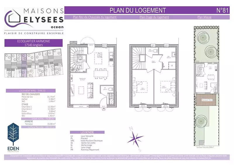 Proposée par MAISONS ELYSEES OCEAN AGENCE D’AIGREFEUILLE-D’AUNI – 3 pièces - 2 chambres - terrain 192 m²