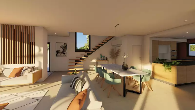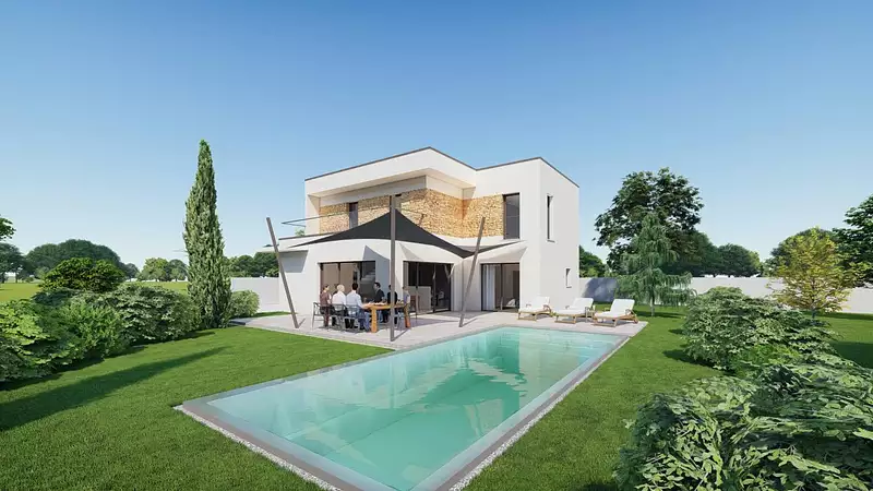 Le modèle est totalement adaptable à vos envies et besoins et personnalisable grâce à de nombreuses options de finition. Nous consulter pour plus d'informations. Le prix affiché comprend le coût du terrain et de la construction hors frais de notaire et taxes. Les annonces de terrains constructibles sont sélectionnées auprès de nos partenaires fonciers selon disponibilités et autorisation de publicité en vue de construire une maison neuve avec un Contrat de Construction de Maison Individuelle dans le cadre de la loi du 19/12/1990. Ces derniers sont soit des professionnels dûment habilités à la transaction immobilière, soit des particuliers. Les terrains sélectionnés sont disponibles à la date de la première parution de l'annonce. En aucun cas Maisons ARLOGIS ou ses collaborateurs ne sont propriétaires des terrains, ne jouent un rôle d'intermédiation ou de négociation sur la transaction et ne participent à la vente. Prix indiqués par nos partenaires fonciers. Visuel d'illustration. Le modèle est totalement adaptable à vos envies et besoins et personnalisable grâce à de nombreuses options de finition. Nous consulter pour plus d’informations. Le prix affiché comprend le coût du terrain et de la construction hors frais de notaire et taxes. Les annonces de terrains constructibles sont sélectionnées auprès de nos partenaires fonciers selon disponibilités et autorisation de publicité en vue de construire une maison neuve avec un Contrat de Construction de Maison Individuelle dans le cadre de la loi du 19/12/1990. Ces derniers sont soit des professionnels dûment habilités à la transaction immobilière, soit des particuliers. Les terrains sélectionnés sont disponibles à la date de la première parution de l’annonce. En aucun cas Maisons ARLOGIS ou ses collaborateurs ne sont propriétaires des terrains, ne jouent un rôle d’intermédiation ou de négociation sur la transaction et ne participent à la vente. Prix indiqués par nos partenaires fonciers.