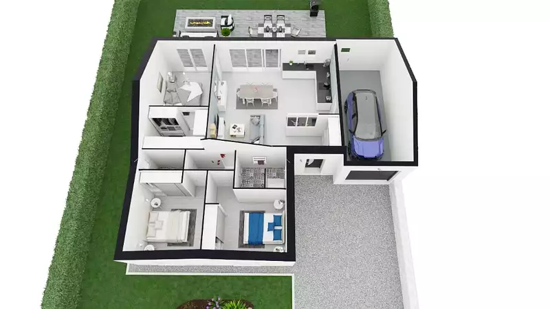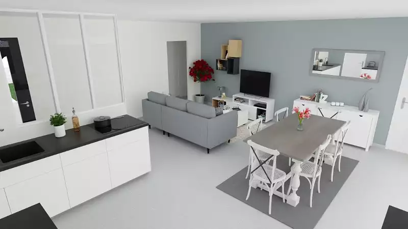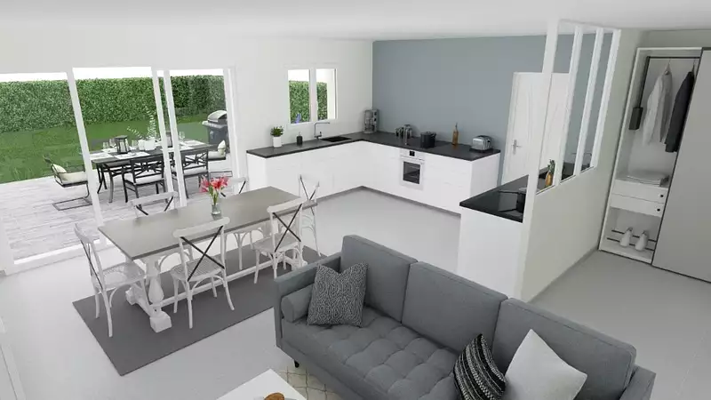Terrain proposé par un partenaire foncier selon disponibilités et autorisation de publicité au prix de 56 000 €. Hors droit d'enregistrement et frais de notaire. Maison proposée, avec un contrat de construction de maison individuelle, dans le cadre de la loi du 19/12/1990, au prix de 143 900 € (Hors branchements et raccordements, papiers peints, peintures, revêtement de sol dans les chambres, qui sont chiffrés dans les travaux qui restent à charge du client. Tarif modifiable sans préavis). Étiquette énergie : A. Différents modèles disponibles pour ce terrain. Assurances et garanties du constructeur comprises (RC professionnelle, décennale, dommage ouvrage).