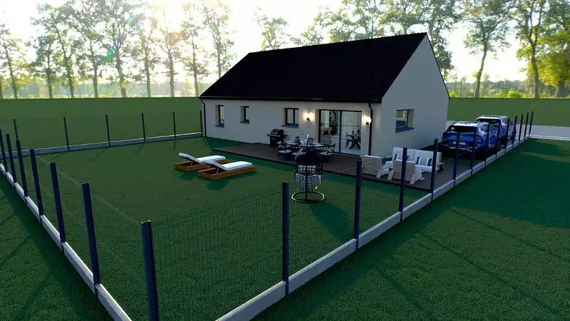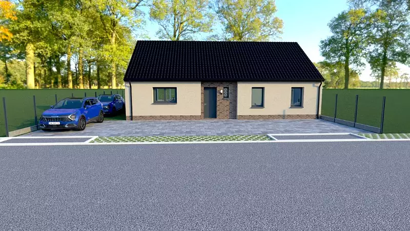 Terrain proposé par un partenaire foncier selon disponibilités et autorisation de publicité au prix de 58 500 €. Hors droit d'enregistrement et frais de notaire. Maison proposée, avec un contrat de construction de maison individuelle, dans le cadre de la loi du 19/12/1990, au prix de 166 071 € (Hors branchements et raccordements, papiers peints, peintures, revêtement de sol dans les chambres, qui sont chiffrés dans les travaux qui restent à charge du client. Tarif modifiable sans préavis). Étiquette énergie : A. Différents modèles disponibles pour ce terrain. Assurances et garanties du constructeur comprises (RC professionnelle, décennale, dommage ouvrage).