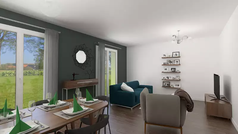 Terrain proposé par un partenaire foncier selon disponibilités et autorisation de publicité au prix de 56 250 €. Hors droit d'enregistrement et frais de notaire. Terrain + Maison proposés au prix de 194 750 € (Hors branchements et raccordements, papiers peints, peintures, revêtement de sol dans les chambres. Tarif modifiable sans préavis). Etiquette énergie : A. Différents modèles disponibles pour ce terrain. . HEXAOM Services est enregistré auprès de l'ORIAS en tant que Courtier en financement, Niveau 1, sous le numéro 14001345.