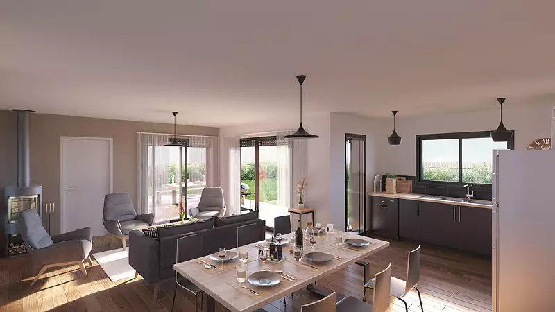 Laissez-vous séduire par cette maison lumineuse aux lignes modernes, conçue pour offrir espace et confort. Profitez d’une suite parentale au rez-de-chaussée avec dressing et salle de bain, idéale pour plus d’intimité. À l’étage, trois belles chambres et une seconde salle de bain garantissent le confort de toute la famille. Un bureau, une pièce de vie ouverte et conviviale, et un garage attenant complètent ce cadre de vie fonctionnel et chaleureux. Pour un confort optimal et conforme à la RE2025, cette maison dispose d’une PAC avec plancher chauffant, radiateurs à l’étage et volets roulants électriques. À noter : Le prix indiqué exclut les revêtements de sol des chambres, la cuisine aménagée, la peinture, la décoration, les raccordements, les frais de notaire et l’assurance dommages-ouvrage. . Imaginez, personnalisez, et créez votre chez-vous sur-mesure !.