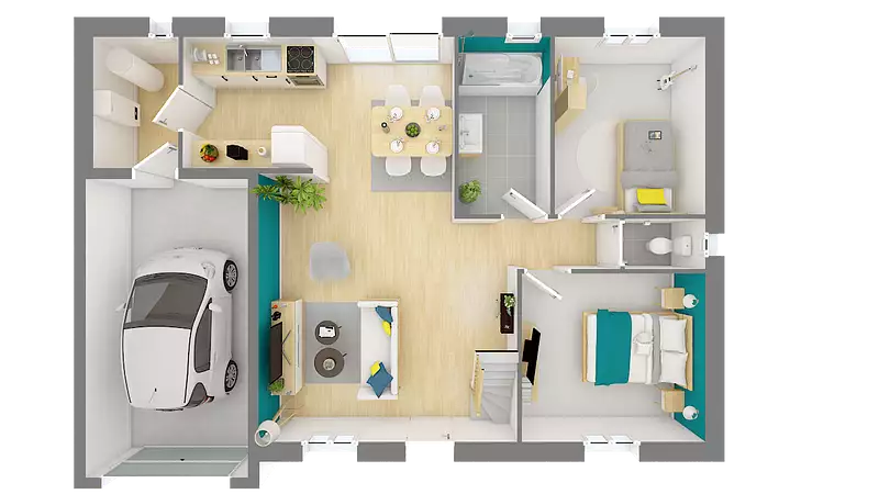 L'un des atouts majeurs de cette maison est sans doute ses combles aménageables, qui offrent la possibilité d'agrandir l'espace habitable selon vos besoins et vos envies, ajoutant ainsi une valeur considérable à votre investissement. De plus, la Rubis intègre un garage, solution pratique pour sécuriser votre véhicule et stocker vos équipements.