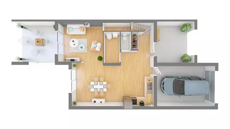 La ""Symphonie"" se distingue par son garage accolé, intégré avec élégance à l'ensemble de la construction, et par sa structure en voile de béton, garantissant solidité et durabilité. Son architecture est une véritable partition qui joue entre les volumes, les hauteurs et les courbures, offrant une esthétique unique qui marie les notes traditionnelles à des touches résolument modernes. L'enduit bi-ton, l'une des options les plus plébiscitées, souligne avec finesse le design du garage et confère à l'ensemble une allure distinguée et contemporaine.