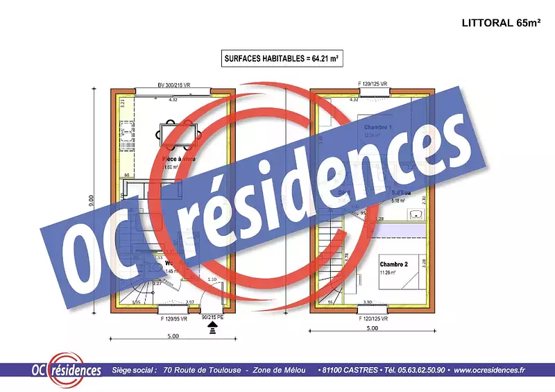 Le modèle LITTORAL 65m² est une maison à étage qui vous plaira par sa simplicité et son agencement pensé pour améliorer votre confort de vie. Au rez de chaussée, vous disposerez d'un espace vie de plus de 30 m², d'un coin rangement et un WC indépendant. A l'étage, vous trouverez deux belles chambres et une salle de bains. Cette maison est à construire dans le département du Tarn, l'Aude, l'Hérault, la Haute-Garonne ainsi que les Pyrénées Orientales par Oc résidences, votre constructeur sur mesure en Occitanie.