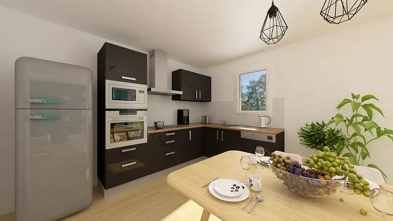 Vous serez séduits par la luminosité qui se dégage de cette maison de plain-pied qui vous propose un espace de vie spacieux de 46 m² environ ouvert sur le jardin avec un coin cuisine aménagée. Trois belles chambres avec rangements, une salle de bains et wc indépendant. Le plus pour cette maison fonctionnelle, un cellier et un garage intégréPour vous assurer un confort de vie et conformèment à la RE2025, nous avons chosi un mode de chauffage par PAC + plancher chauffant, volets roulants électriques, Prix hors fourniture et pose : des appareils sanitaires (sauf système de chauffage et d'eau chaude sanitaire), du carrelage et de la faïence, des revêtements de sol dans les chambres. Hors décoration et aménagement intérieur et peinture. Hors raccordements, frais de notaire et dommage ouvrage.