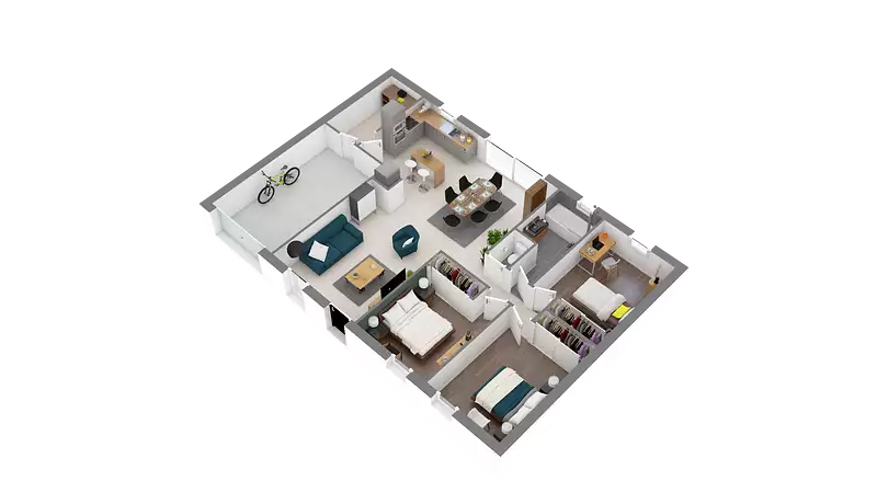 Spacieuse et fonctionnelle, cette maison traditionnelle de plain-pied est dotée d'un grand espace de vie de 40 m² environ avec cuisine ouverte, très lumineux inondé de lumière grâce à ses grandes ouvertures. Un dégagement dessert trois chambres, une salle de bains. Le garage intégré communiquant avec le cellier se révélera un plus pour cette charmante maisonPour vous assurer un confort de vie et conformèment à la RE2025, nous avons chosi un mode de chauffage par PAC + plancher chauffant, volets roulants électriques, Prix hors fourniture et pose : des appareils sanitaires (sauf système de chauffage et d'eau chaude sanitaire), du carrelage et de la faïence, des revêtements de sol dans les chambres. Hors décoration et aménagement intérieur et peinture. Hors raccordements, frais de notaire et dommage ouvrage.