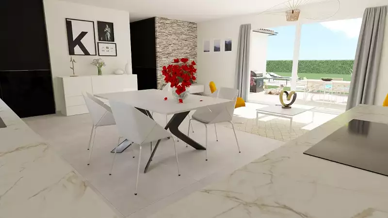 Cette villa neuve répond parfaitement à la norme RE2020 grâce à son isolation renforcée et son mode de chauffage très économique.
