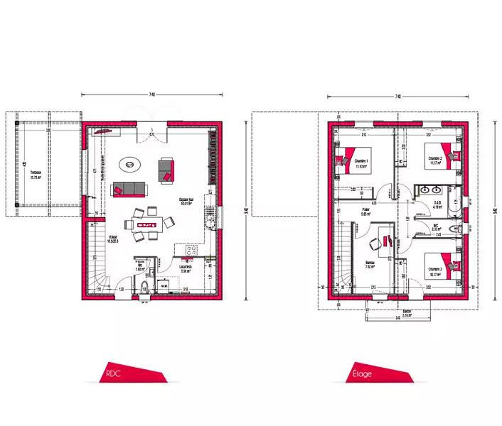 Proposée par COULEUR VILLAS – 4 pièces - 3 chambres - terrain 1 040 m²