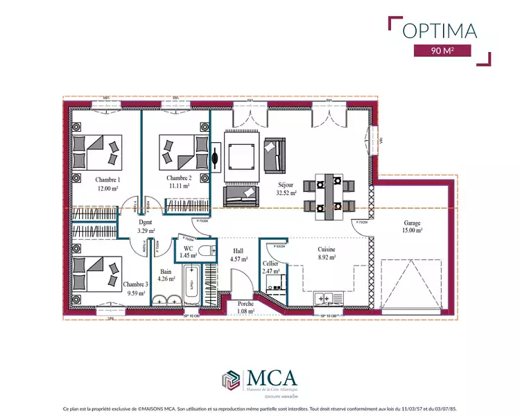 Ce modèle saura vous plaire grâce à son agencement idéalement pensé pour votre confort de vie, et l'optimisation des espaces.