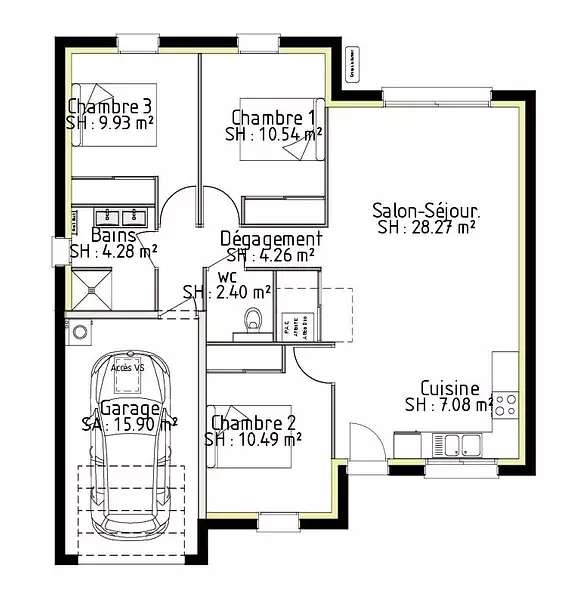 Proposée par MAISONS PARTOUT – 5 pièces - 3 chambres - terrain 528 m²
