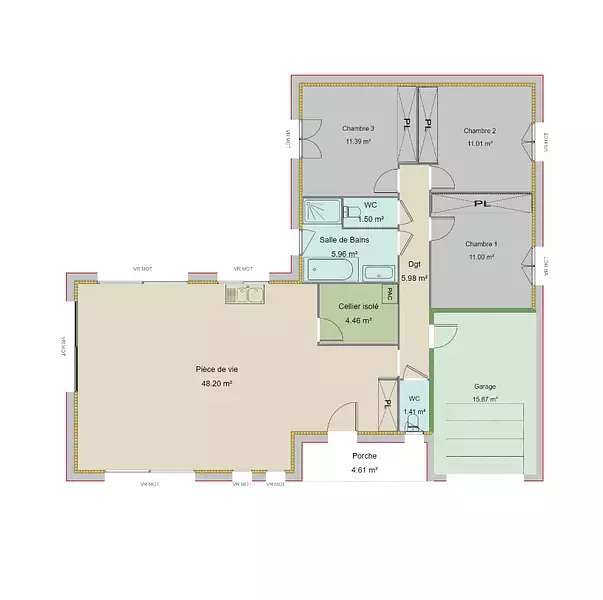 Proposée par MAISONS FRANCE CONFORT – 4 pièces - 3 chambres - terrain 1 703 m²