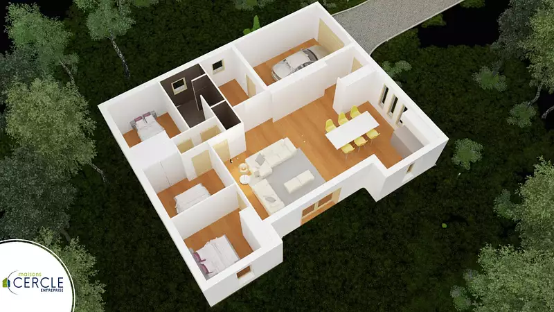 Le modèle Persan se distingue par son design unique, jouant sur les avancées et les angles pour créer un espace de vie à la fois ouvert et accueillant. Avec ses 4 chambres spacieuses, cette maison est idéale pour accueillir une famille, offrant à chacun son espace privé tout en favorisant les moments de partage dans ses 4 pièces généreusement dimensionnées.