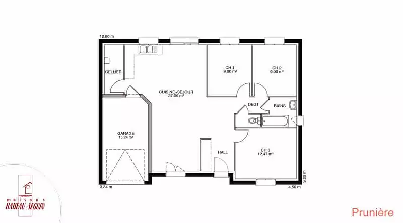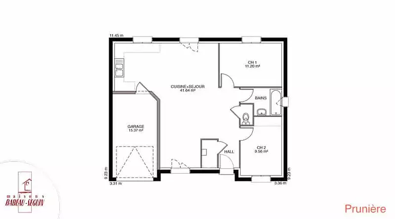 Sur ce terrain, nous vous proposons cette maison neuve, modèle Prunière, l’un des modèles les plus vendus par Babeau-Seguin, constructeur offrant le meilleur rapport qualité/prix du marché. Figurant dans le top 5 des maisons individuelles Babeau-Seguin, cette maison plain-pied Prunière séduit par son renfoncement qui casse la monotonie de la façade avant et offre un abri de seuil.