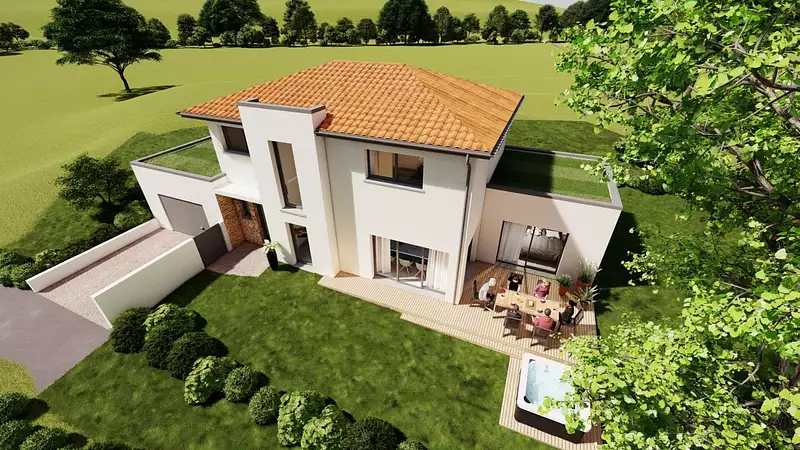 Le modèle est totalement adaptable à vos envies et besoins et personnalisable grâce à de nombreuses options de finition. Nous consulter pour plus d'informations. Le prix affiché comprend le coût du terrain et de la construction hors frais de notaire et taxes. Les annonces de terrains constructibles sont sélectionnées auprès de nos partenaires fonciers selon disponibilités et autorisation de publicité en vue de construire une maison neuve avec un Contrat de Construction de Maison Individuelle dans le cadre de la loi du 19/12/1990. Ces derniers sont soit des professionnels dûment habilités à la transaction immobilière, soit des particuliers. Les terrains sélectionnés sont disponibles à la date de la première parution de l'annonce. En aucun cas Maisons ARLOGIS ou ses collaborateurs ne sont propriétaires des terrains, ne jouent un rôle d'intermédiation ou de négociation sur la transaction et ne participent à la vente. Prix indiqués par nos partenaires fonciers. Visuel d'illustration. Le modèle est totalement adaptable à vos envies et besoins et personnalisable grâce à de nombreuses options de finition. Nous consulter pour plus d’informations. Le prix affiché comprend le coût du terrain et de la construction hors frais de notaire et taxes. Les annonces de terrains constructibles sont sélectionnées auprès de nos partenaires fonciers selon disponibilités et autorisation de publicité en vue de construire une maison neuve avec un Contrat de Construction de Maison Individuelle dans le cadre de la loi du 19/12/1990. Ces derniers sont soit des professionnels dûment habilités à la transaction immobilière, soit des particuliers. Les terrains sélectionnés sont disponibles à la date de la première parution de l’annonce. En aucun cas Maisons ARLOGIS ou ses collaborateurs ne sont propriétaires des terrains, ne jouent un rôle d’intermédiation ou de négociation sur la transaction et ne participent à la vente. Prix indiqués par nos partenaires fonciers.