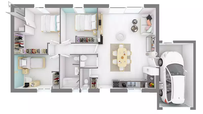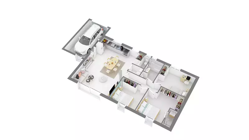 Vous disposerez de 3 chambres dont la suite parentale avec salle d'eau privative et grand dressing, une salle de bain équipée, une cuisine ouverte sur séjour/salle à manger de 43 m², le cellier bien placé, un second wc à l'entrée, et le garage de 17 m².