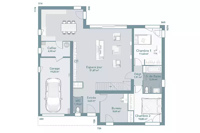 Proposée par MAISONS FRANCE CONFORT – 6 pièces - 4 chambres - terrain 469 m²