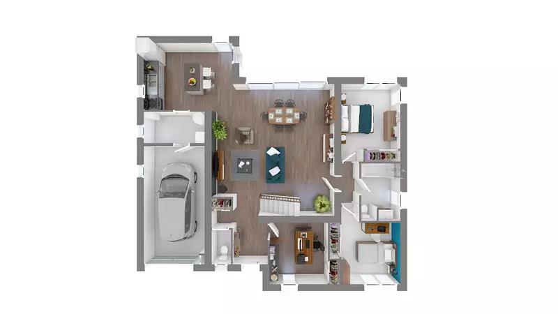 Votre maison bioclimatique est livrée crépis gratté + carrelage dans toutes les pièces (A choisir). Dans la salle de bain la faïence est comprise (A choisir). Les sanitaires avec meuble(s) vasque(s) et wc suspendu sont déjà inclus.