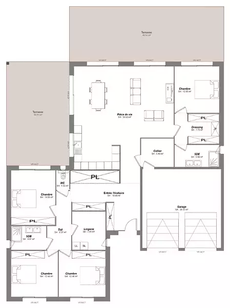 - Double garage, offrant un espace sécurisé pour vos véhicules et du rangement supplémentaire.