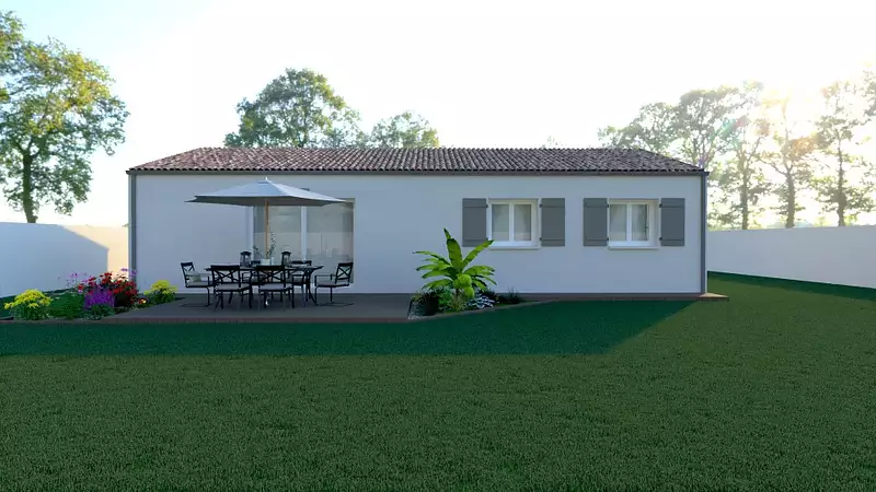 La maison se compose d'une entrée avec placard, une grande pièce de vie très lumineuse avec cuisine ouverte, un cellier, trois chambres et une salle d'eau. Pour plus de confort, pour pourrez profiter d'un garage de 15m2 avec un accès depuis la maison.
