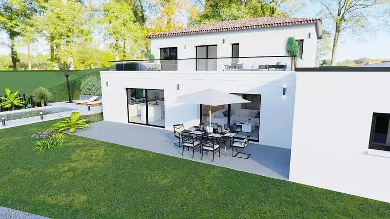 Terrain proposé par un partenaire foncier selon disponibilités et autorisation de publicité au prix de 115 000 €. Hors droit d'enregistrement et frais de notaire. Maison proposée, avec un contrat de construction de maison individuelle, dans le cadre de la loi du 19/12/1990, au prix de 342 800 € (Hors branchements et raccordements, papiers peints, peintures, revêtement de sol dans les chambres, qui sont chiffrés dans les travaux qui restent à charge du client. Tarif modifiable sans préavis). Étiquette énergie : A. Différents modèles disponibles pour ce terrain. Assurances et garanties du constructeur comprises (RC professionnelle, décennale, dommage ouvrage).