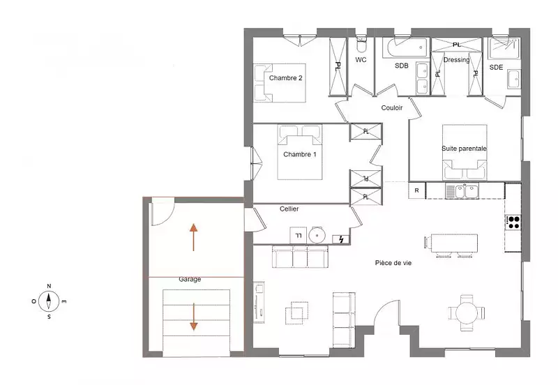 . (Plan personnalisable). Tous nos ouvrages sont réalisés sur-mesure en fonction de vos attentes et de nos échanges avec vous ainsi que dans le respect de la règlementation RE 2020. Ce projet comporte les garanties suivantes: Contrat de construction CCMI. Dommage/Ouvrage. RC Garantie décennale. Parfaite achèvement. Etude de sol G2. Prix et délais convenu. Garantie de livraison. Garantie financière Pour votre tranquillité nous nous occupons de toutes les formalités administratives.