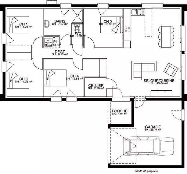 - Chambres : 4