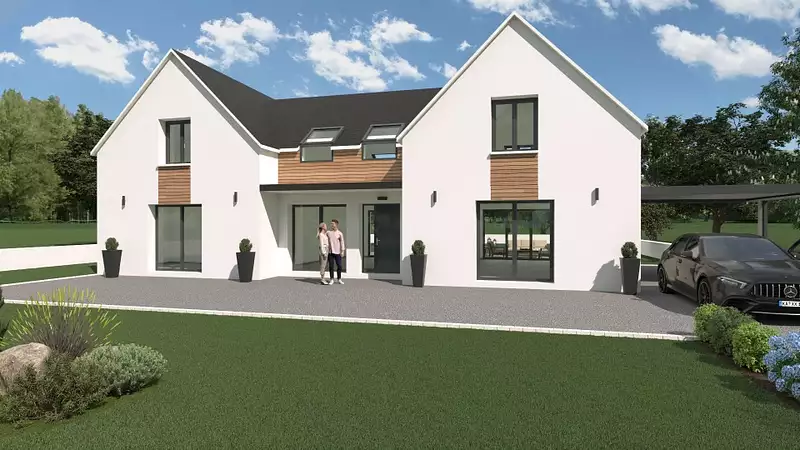 Terrain proposé par un partenaire foncier selon disponibilités et autorisation de publicité au prix de 230 000 €. Hors droit d'enregistrement et frais de notaire. Maison proposée, avec un contrat de construction de maison individuelle, dans le cadre de la loi du 19/12/1990, au prix de 263 900 € (Hors branchements et raccordements, papiers peints, peintures, revêtement de sol dans les chambres, qui sont chiffrés dans les travaux qui restent à charge du client. Tarif modifiable sans préavis). Étiquette énergie : A. Différents modèles disponibles pour ce terrain. Assurances et garanties du constructeur comprises (RC professionnelle, décennale, dommage ouvrage).