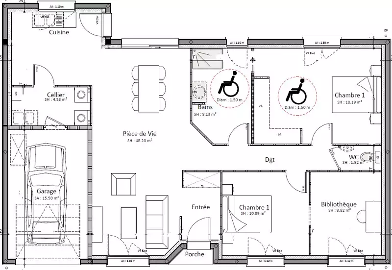 - Surface : 100 m²