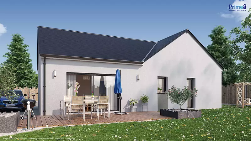 Fonctionnelle et spacieuse, cette maison de plain-pied vous propose un bel espace de vie de 41 m² environ lumineux et traversant. Sa cuisine est ouverte sur le séjour et a un accès direct au cellier. Son espace nuit est composé de trois belles chambres avec rangements, d'une salle de bains et de wc séparés. Pour vous assurer un confort de vie et conformément à la RE2025, nous avons choisi un mode de chauffage par PAC + plancher chauffant, volets roulants électriques. Prix hors fourniture et pose : des appareils sanitaires (sauf système de chauffage et d'eau chaude sanitaire), du carrelage et de la faïence, des revêtements de sol dans les chambres. Hors décoration et aménagement intérieur et peinture. Hors raccordements, frais de notaire et dommage ouvrage.