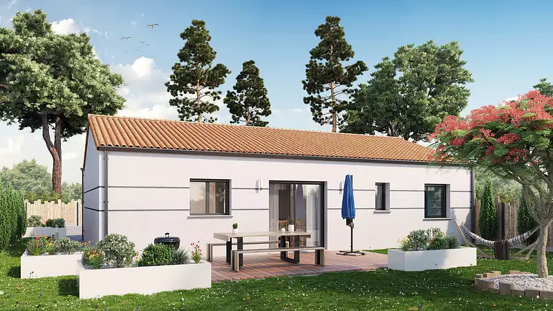 Une maison facile à vivre, pensée pour répondre à toutes vos envies de simplicité et de confort. Avec sa pièce de vie traversante et ouverte, ses 3 chambres, sa salle de bain fonctionnelle et son garage intégré, ce modèle offre tout le nécessaire, sans superflu. Idéale pour un premier achat malin ou une résidence secondaire pratique et lumineuse, elle combine compacité, efficacité et confort au quotidien. Son plan évolutif et personnalisable s’adapte à vos projets de vie, en bord de mer comme à la campagne. Pour un confort optimal et conforme à la RE2025, cette maison dispose d’une PAC avec plancher chauffant et volets roulants électriques. À noter : Le prix indiqué exclut les revêtements de sol des chambres, la cuisine aménagée, la peinture, la décoration, les frais de notaire et l’assurance dommages ouvrage.