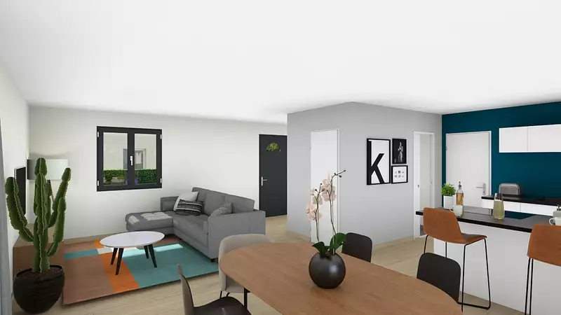Nous vous proposons notre modèle SALSA de 90m², un modèle contemporain avec de beaux volumes, composé d'un grand séjour lumineux, de ses 3 chambres spacieuses ainsi qu'un garage de 18 m².