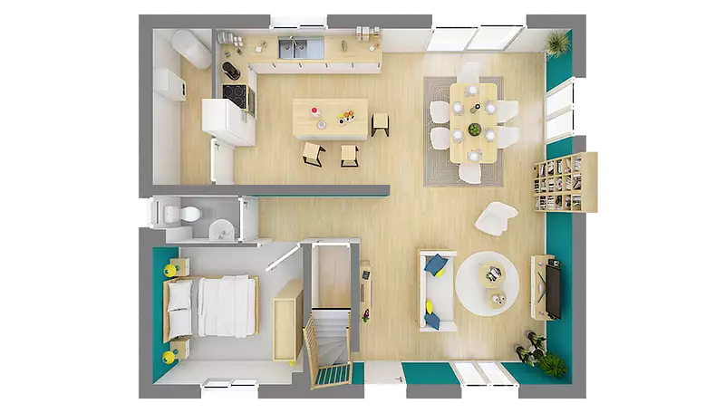 Sobriété et efficacité sont les maîtres mots de ce modèle, idéal pour les terrains étroits et les budgets serrés. Le plan de l'Epervière est entièrement personnalisable, vous permettant de créer une maison unique qui répond parfaitement à vos besoins et à vos envies.