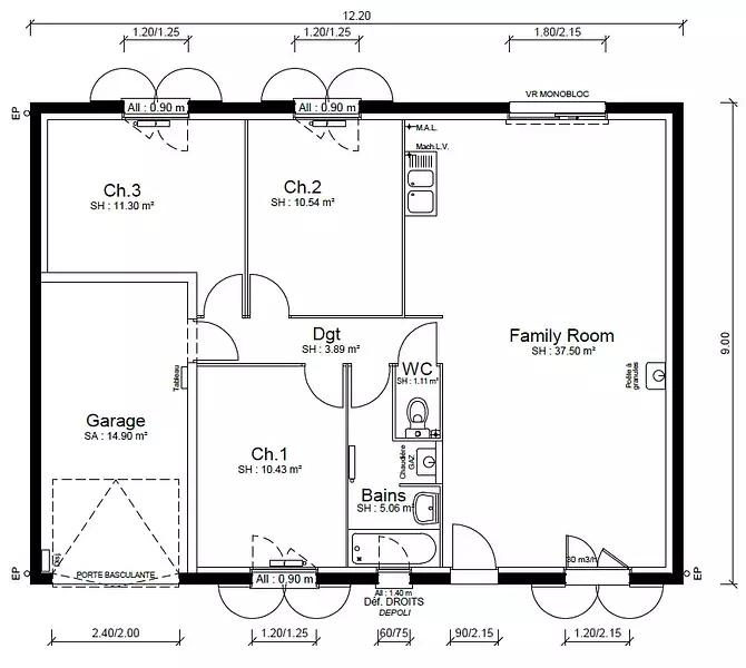 - Surface garage : 15 m²