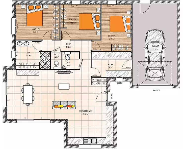 Proposée par MAISONS BERNARD JAMBERT – 5 pièces - 3 chambres - terrain 324 m²
