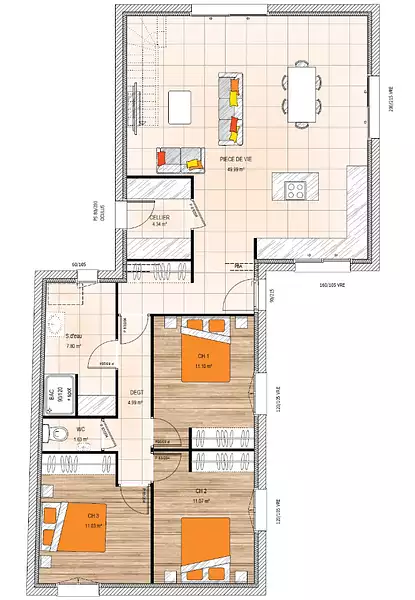 Proposée par MAISONS BERNARD JAMBERT – 5 pièces - 3 chambres - terrain 408 m²