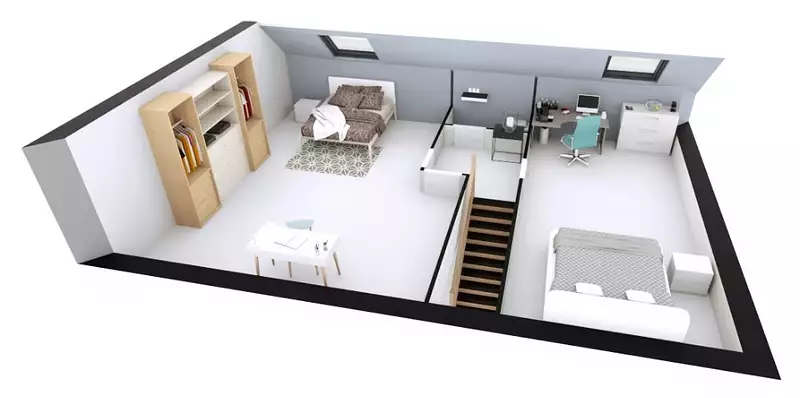 Il s'agit d'une maison de 2 niveaux. Son intérieur compte trois chambres, une cuisine et une salle de bains. La maison est neuve.