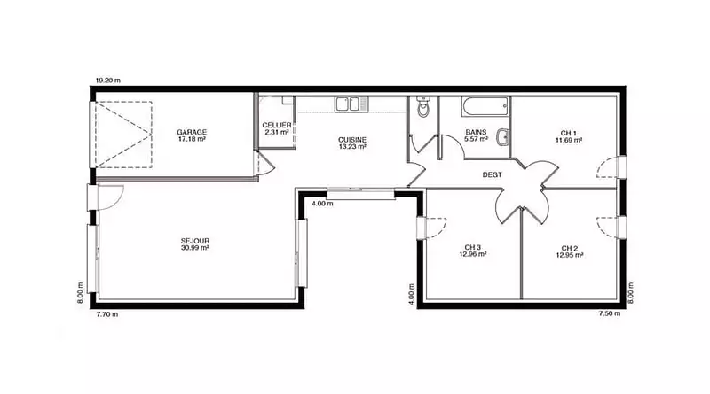 Rien ne manque dans la Longium, pour un confort total. Vous disposerez d’un long garage intégré et de trois chambres. C’est un logis bien réparti et fonctionnel, comportant une grande pièce de vie traversante, dotée d’une cuisine ouverte.
